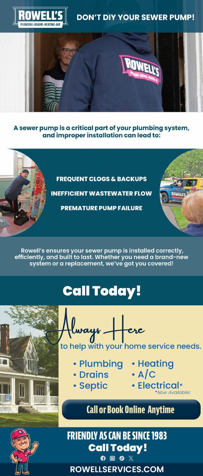 Rowell's ensures your sewer pump is installed correctly, efficiently, and built to last. Whether you need a brand-new system or a replacement, we've got you covered!