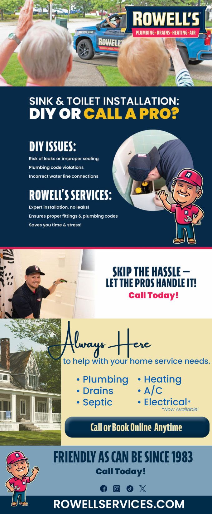 Rowell's services: expert installation, no leaks! Ensures proper fittings & plumbing codes. Saves you time & stress!